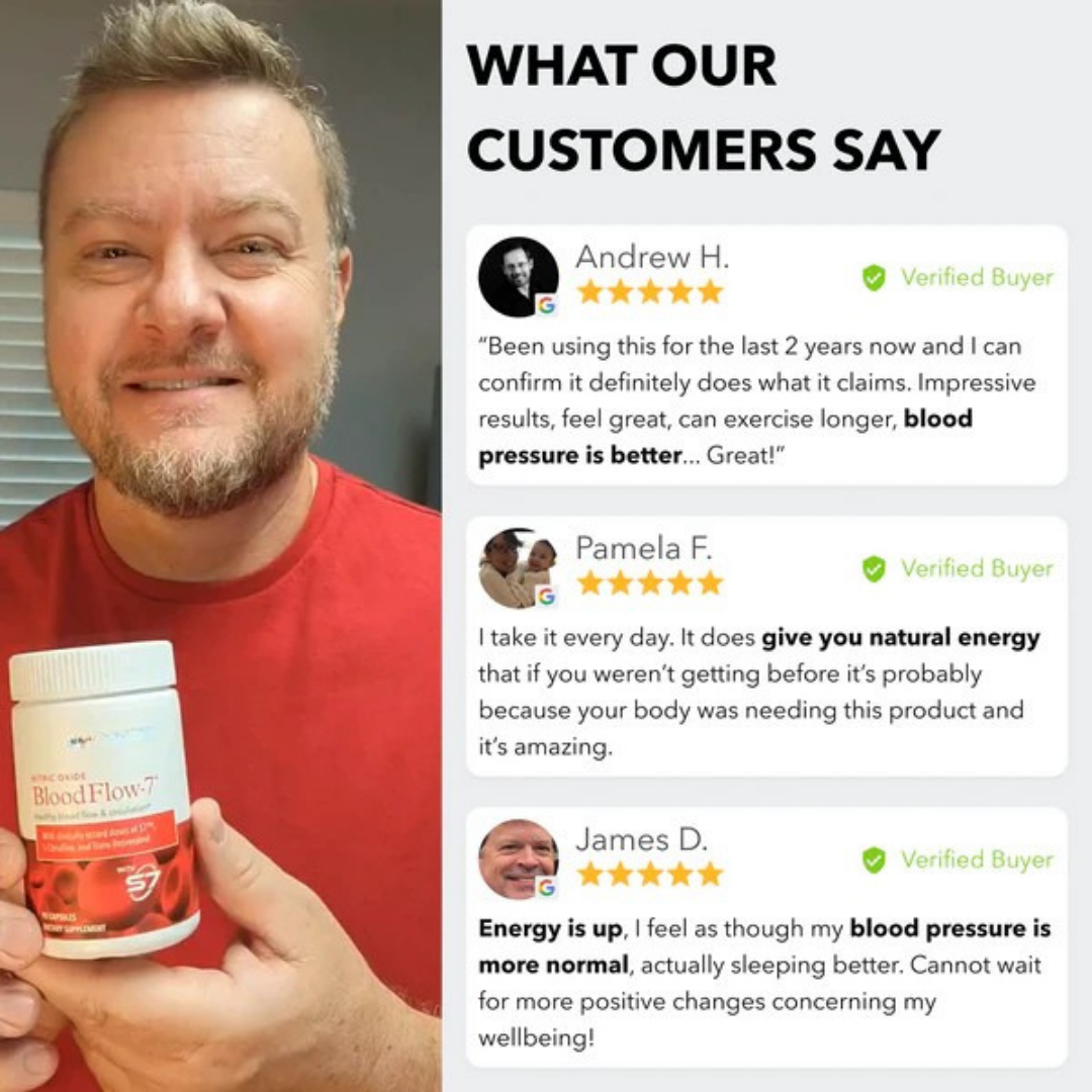 I’ve struggled with high blood pressure for years. After taking BloodFlow-7 daily, I noticed my readings improved and I feel more energized throughout the day. It’s reassuring knowing it’s plant-based and clinically backed. Highly recommend!